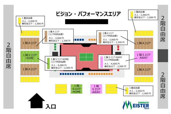 いずれの指定席も、副審側のホームベンチに近い場所から付番します(副審側のホームベンチに一番近い席が「1」です)