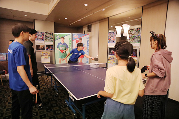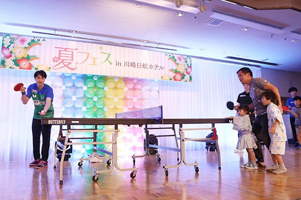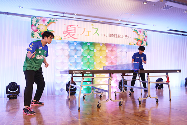 8/3(日) に川崎日航ホテルで開催された「夏フェス」に、木下マイスター東京から田添健汰選手と、木下卓球アカデミーの選手(倉嶋康介選手、柴田 洸選手、飯田莉々花選手)が参加しました。